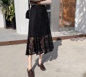 鮮やかなレースが魅力のスカートです。ウエストはゴム仕様で、着脱も簡単。フレアデザインで裾が広がっているため、歩くたびに女性らしい動きを演出します。裏地も付いているので透ける心配もありません。