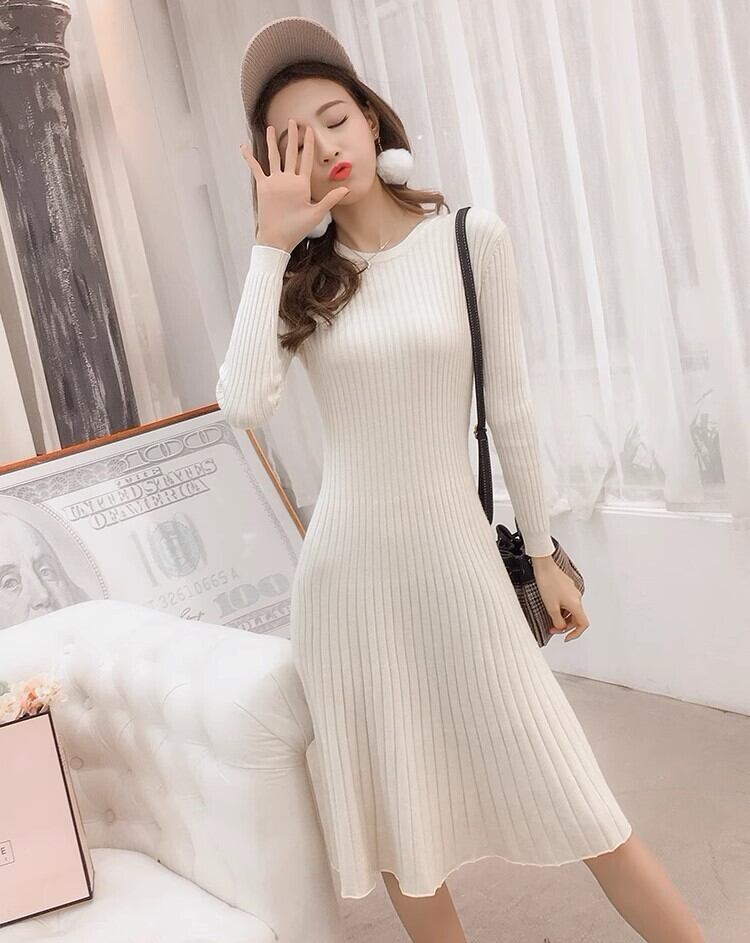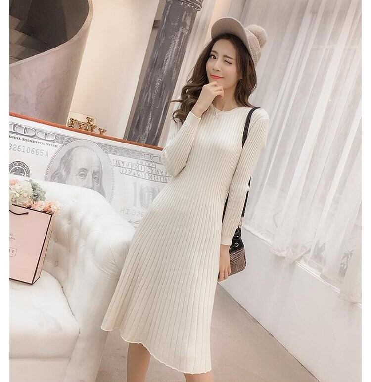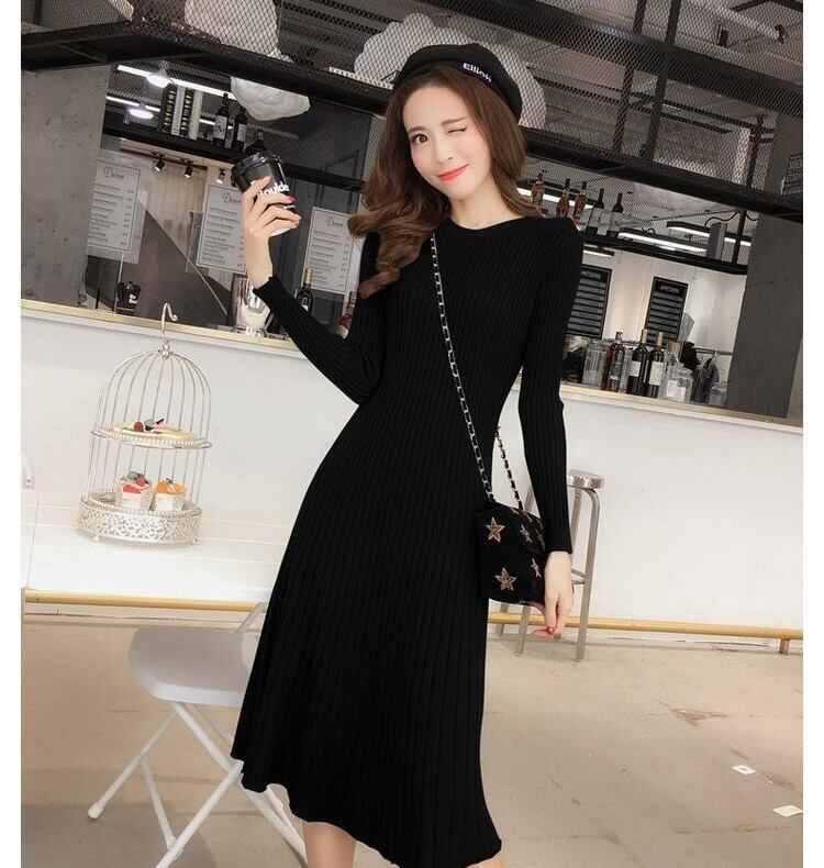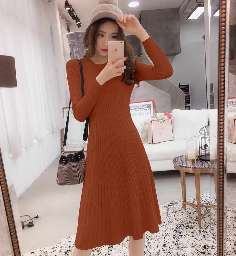 色豊富 すっきり スリムウエスト ニットドレス ワンピース 膝下 ミモレ丈 ミディアム丈 Aライン 長袖 襟なし クルーネック 細身 スマート 伸縮性 ストレッチ ニット リブ かわいい 大人可愛い シンプル きれいめ カジュアル 上品 おしゃれ 無地 春 秋 冬 レディース 女性用 ママ 女の子 OL 通勤 学生 通学 デート お出かけ 女子会 休日 普段使い デイリー 重ね着 韓国系 オルチャン ファッション コーデ スタイル S M L ブラック ピーコックブルー ベージュ キャラメル カラバリ