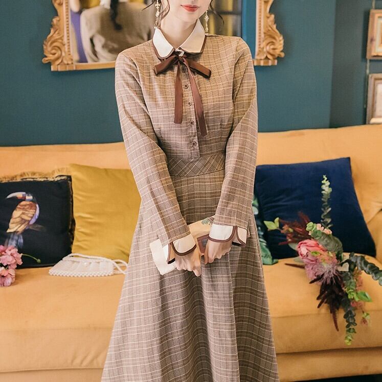 ワンピース シャツワンピース ブラウス ひざ丈 フレア 長袖 胸元リボン 飾りボタン リボン 美ライン ニュアンス ウエストマーク 清楚 かわいい 大人可愛い きれいめ シンプル カジュアル 上品 おしゃれ お洒落 大人女子 こなれ感 ラブリー キュート ガーリー 個性的 エレガント モダン 主役級 存在感 ベーシック ヨーロッパカジュアル ブリティッシュ スタンダード 洗練 エイジレス レディース お出かけ 旅行 着回し 普段使い 重ね着 お揃い チェック柄 S M L XL