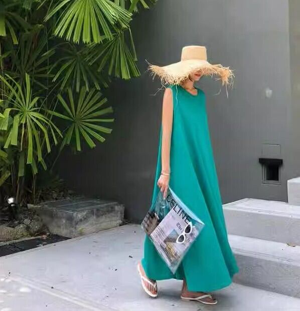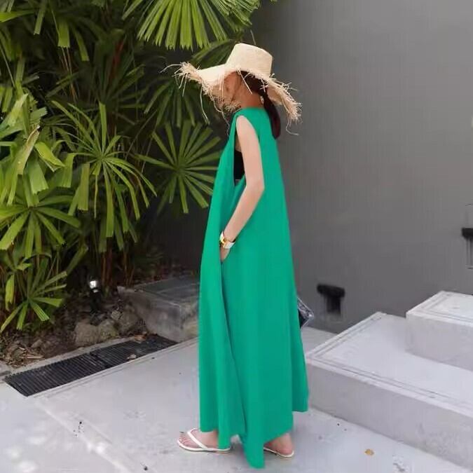 レイヤード Tシャツワンピ ワンピース 膝下丈 ミモレ丈 ロング丈 袖なし ノースリーブ 襟なし ラウンドネック Aライン 裾広がり かわいい 大人可愛い シンプル カジュアル おしゃれ お洒落 こなれ感 リラックス リラクシー アームホール広め 無地 春 夏 レディース ママ 女の子 学生 通学 デート お出かけ 女子会 休日 旅行 普段使い デイリー 重ね着 着回し 韓国系 オルチャン ファッション コーデ スタイル 体系カバー 楽ちん S M L グレーホワイト グラスグリーン カラバリ