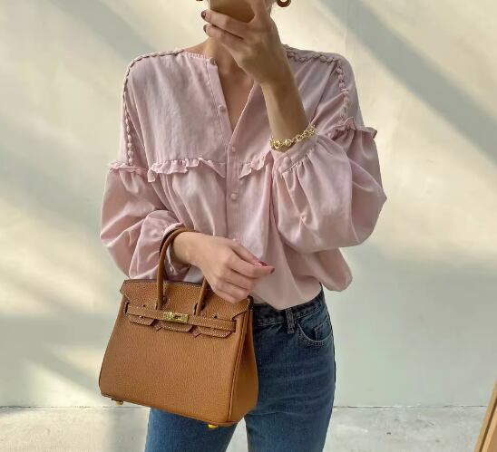 フェミニンな雰囲気を演出するノーカラーブラウスが登場しました!デザインのポイントは、胸元のラッフルレース。アンティーク感溢れる繊細なデザインで、女性らしい上品さを引き立てます。