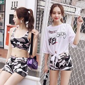 カモフラージュ柄のスリーピース水着が新登場!胸元の谷間を美しく演出するパッド付きで、女性らしいシルエットを引き立てます。伸縮性のある素材なので、着心地も抜群です。ビーチやプールでのリゾートや旅行にぴったりのアイテムです。