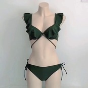 おしゃれで個性的な水着が欲しい方にぴったりの商品です。この水着は、ビキニスタイルでありながら、上下セットでお得な2点セットです。胸元にはパッドが付いていて、谷間を美しく演出します。さらに、フリル、リボンといったデザインも取り入れており、女性らしさを引き立てます。