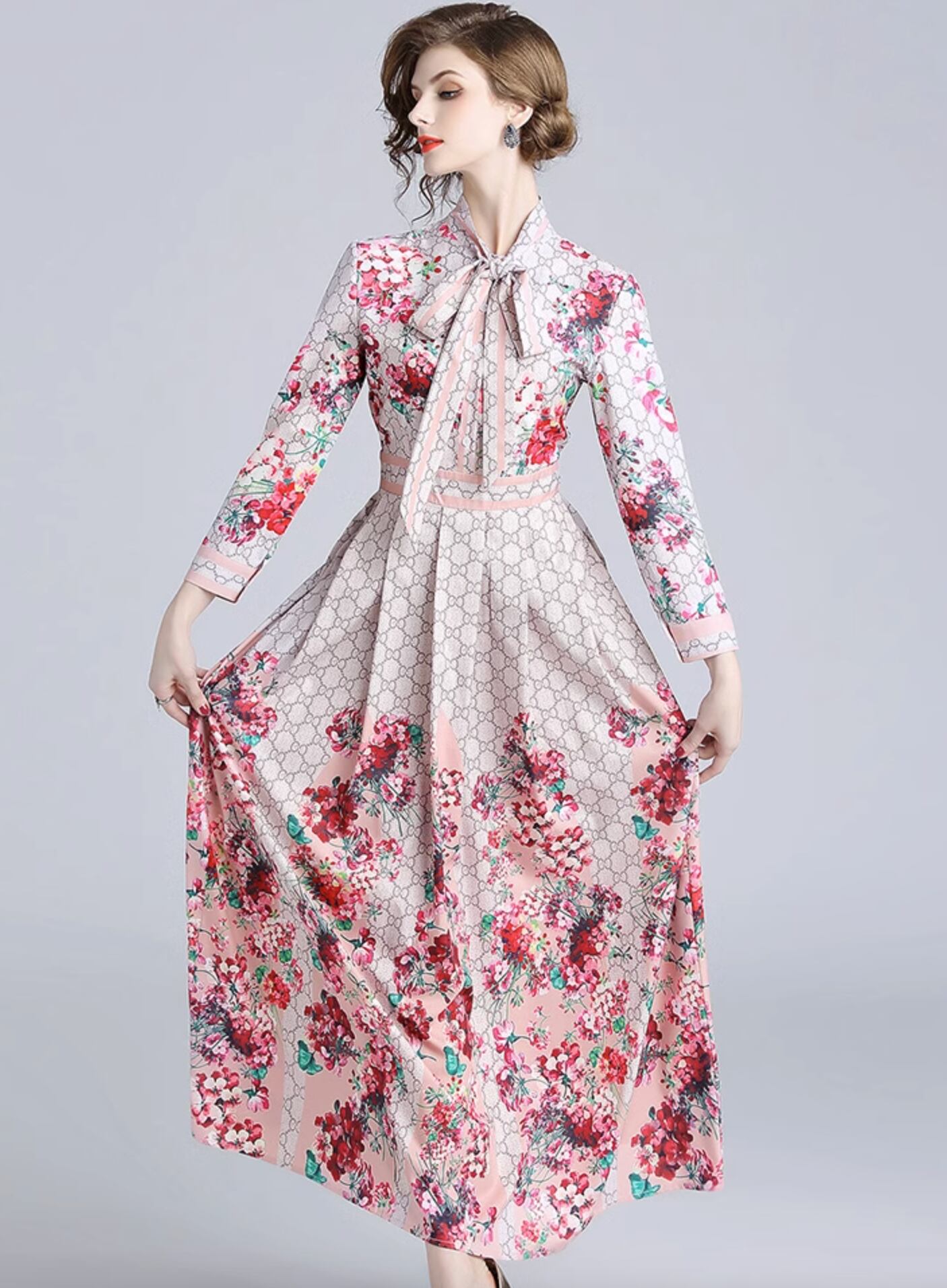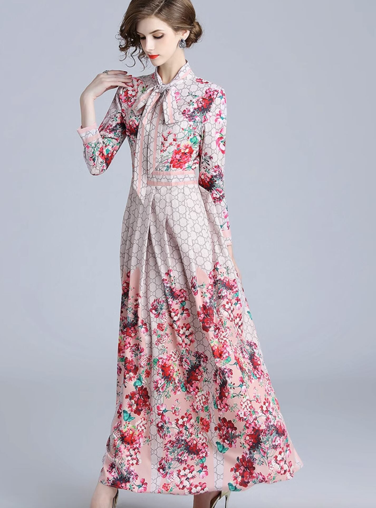 コーディネートを考える手間なくオシャレに仕上がる華やかなロング丈ワンピースです。