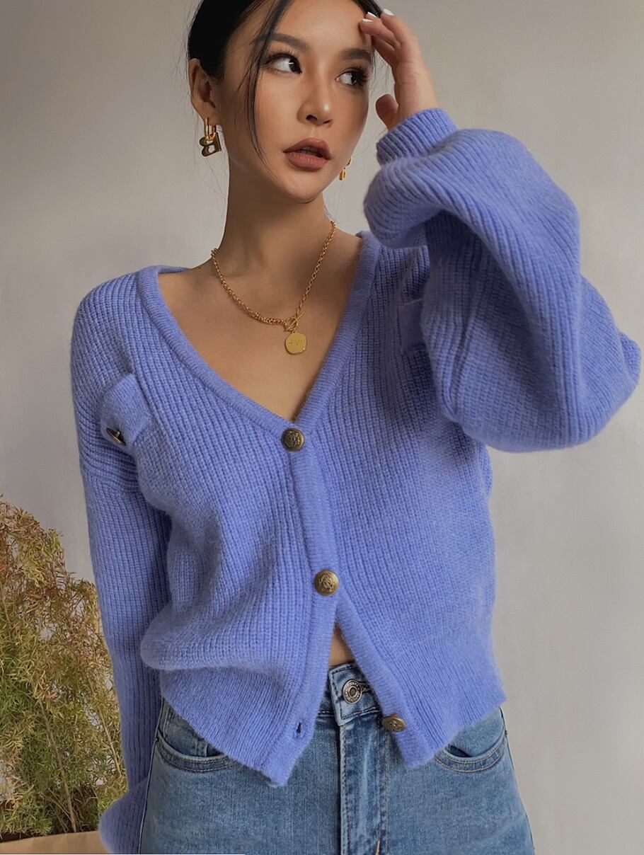 トップス セーター カーディガン ショート丈 長袖 ボリューム袖 Vネック スリム ニット ボタン かわいい 大人可愛い きれいめ シンプル カジュアル おしゃれ かっこいい こなれ感 ルーズ クール セクシー エレガント 存在感 無地 春 秋 冬 20代 30代 40代 50代 レディース ママ ビジネス OL 通勤 通学 デート お出かけ お泊まり 休日 イベント 着回し 普段使い 重ね着 韓国 ファッション コーデ スタイル フリーサイズ ブルー 青 ホワイト 白