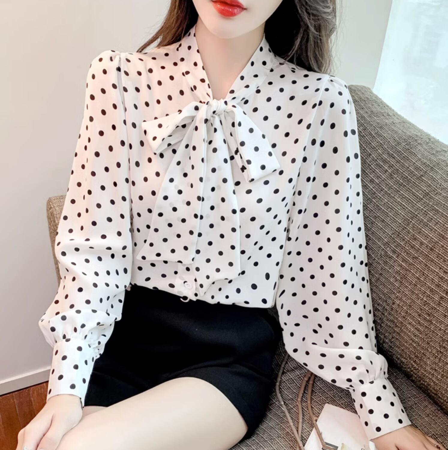 ブラウス ドット柄 リボン ボウタイ トップス シフォン パフスリーブ 長袖 スリム フィット かわいい 大人可愛い きれいめ シンプル カジュアル 上品 おしゃれ レトロ こなれ感 ラブリー ガーリー 春 夏 秋 冬 20代 30代 40代 レディース オフィス ビジネス OL 通勤 デート お出かけ 女子会 お泊まり 休日 パーティー イベント リゾート 旅行 着回し 普段使い 韓国 オルチャン ファッション コーデ スタイル モテ 体系カバー S M L XL 通気性 アプリコット ホワイト