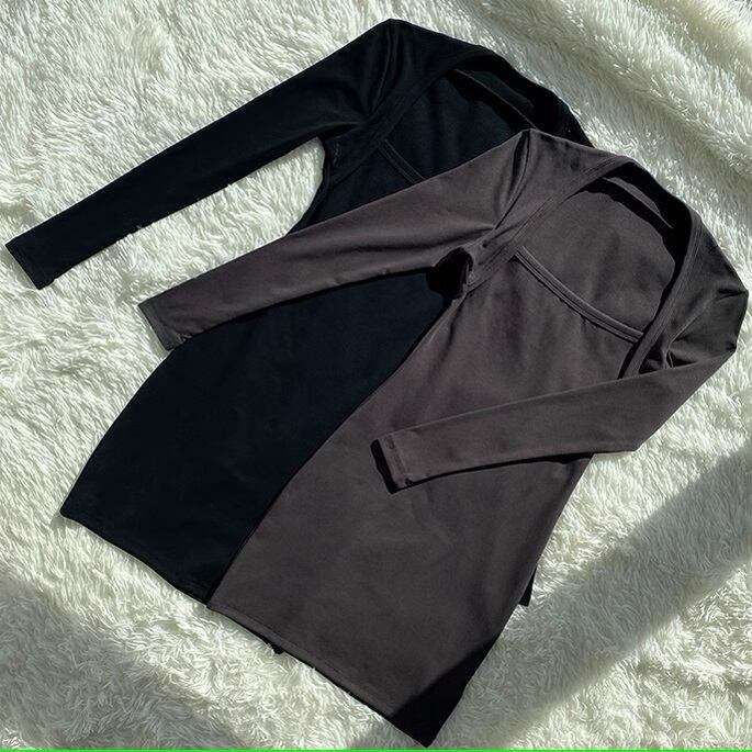 トラぺーズネック ボディコンシャス ワンピース 膝上 マイクロミニ丈 ミニ丈 ショート丈 長袖 襟なし 台形ネック スクエアネック 細身 スリム スマート 伸縮性 ストレッチ 薄手 シンプル カジュアル きれいめ おしゃれ 大人っぽい セクシー 女っぽ シック 無地 春 秋 レディース 女性用 女の子 デート お出かけ 休日 イベント 普段使い デイリー デコルテ見せ 肌見せ 韓国風 オルチャン ファッション コーデ スタイル 脚長 S M L すっきり 黒 ブラック 深灰色 ダークグレー モノトーン