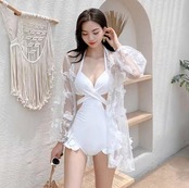 水着 スイムウェア レディース モノキニ 体型カバー 羽織り ホルターネック クロス クロスバンド 背中開き フリル ウエストマーク ウエストリボン シースルー シアー 胸元 谷間魅せ かわいい 大人可愛い きれいめ ゴージャス 華やか 大人っぽい おしゃれ お洒落 ラブリー キュート ガーリー スタイリッシュ モダン かっこいい セクシー トレンド フェミニン リゾート 旅行 温泉 プール 夏 海 高見え 格上げ モテ インスタ映え こなれ感 2XL M L XL ホワイト ブラック レッド 白 黒