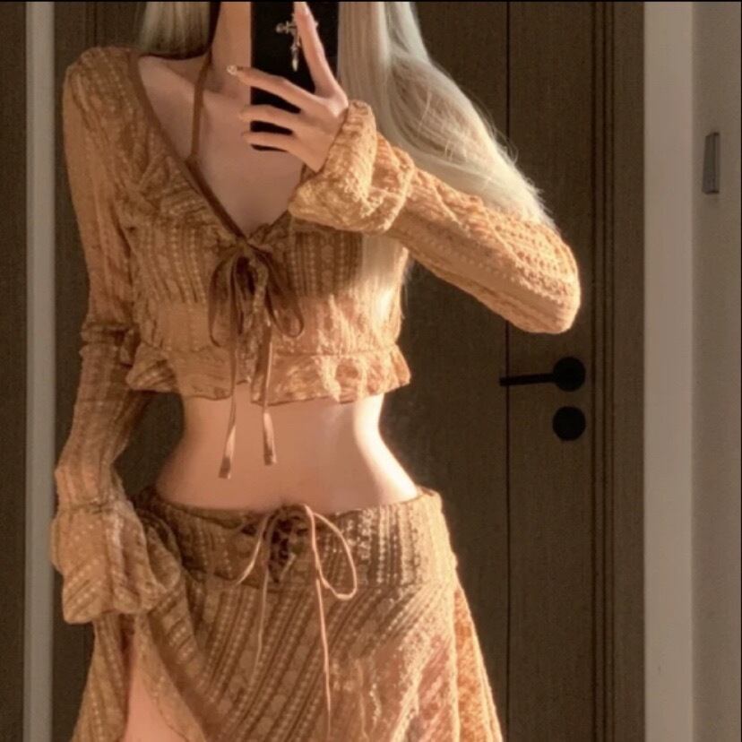 水着 ビキニ レディース タンキニ 紐 体型カバー 羽織り 二の腕カバー 長袖 キャミキミ リボン フリル ウエストリボン スリット クロシェ 伸縮性 シャーリング 上下セット 大人可愛い きれいめ 華やか 大人っぽい おしゃれ 主役級 キュート 個性的 クール モード系 スタイリッシュ モダン かっこいい メンズライク エスニック エキゾチック アジアン セクシー トレンド フェミニン 無地 リゾート 旅行 プール 夏 美脚 脚長 着痩せ スタイルアップ 体型カバー スタイルカバー S M L ブラウン