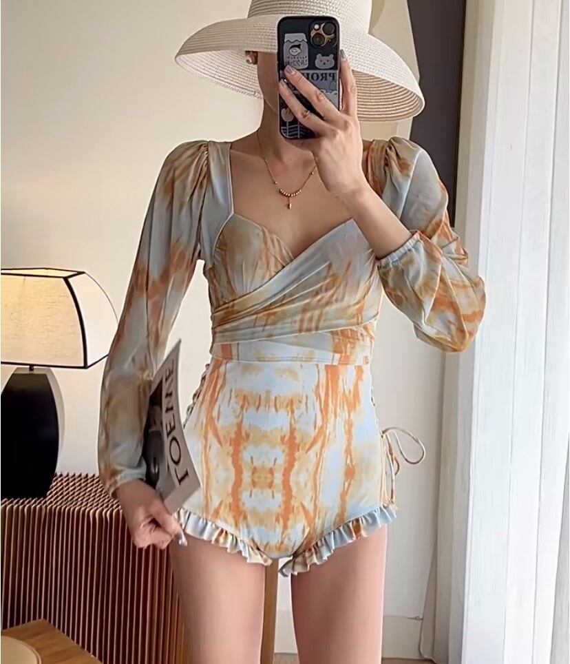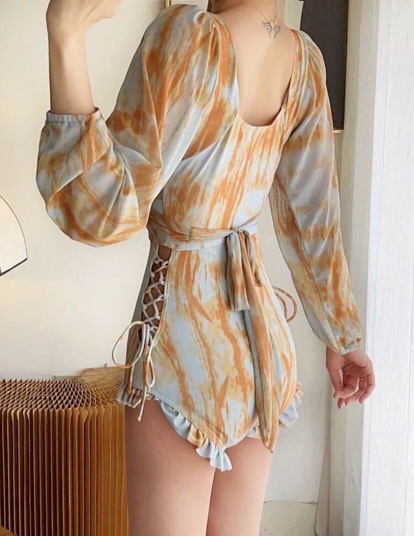 タイダイカラーとサイドのウエストカットデザインが特徴のワンピース水着です。体型カバー効果も抜群で華やかなデザインは夏のスタイルアップを叶えます!旅行や温泉でのリゾートスタイルもおしゃれにきまるアイテムです。