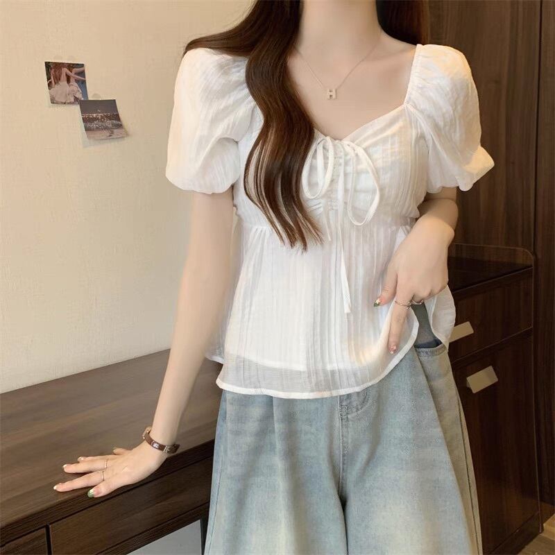 レディース シャツ ブラウス 半袖 パフスリーブ スクエアネック りぼんタイ フェミニン ハイウエスト ギャザー かわいい 大人可愛い きれいめ シンプル カジュアル おしゃれ ラブリー キュート ベーシック アクティブ ロマンティック ナチュラル 無地 夏 学生 学校 通学 旅行 女子会 休日 ショッピング ライブ 合コン コンパ 体型カバー 普段使い 着回し モテ 清楚 トレンド 流行 インスタ映え M L XL 2XL 3XL 4XL 大きいサイズ ビッグ ゆったり ゆる 白 ホワイト レッド