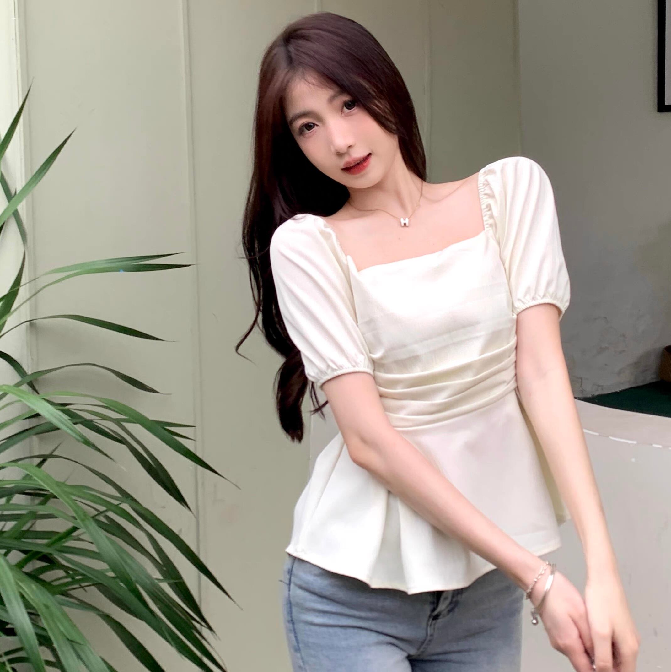 レディース シャツ ブラウス プルオーバー 半袖 パフスリーブ スクエアネック 背中開き タック タックプリーツ ウエストマーク ハイウエスト ギャザー かわいい 大人可愛い きれいめ シンプル カジュアル 上品 おしゃれ こなれ感 ガーリー 抜け感 ラブリー キュート ベーシック ロマンティック ナチュラル 無地 夏 お出かけ 休日 楽ちん 体型カバー モテ 清楚 トレンド 流行 インスタ映え L XL 2XL 3XL 4XL 大きいサイズ ビッグ ゆったり ゆる 白 ホワイト 黒 ブラック モノトーン