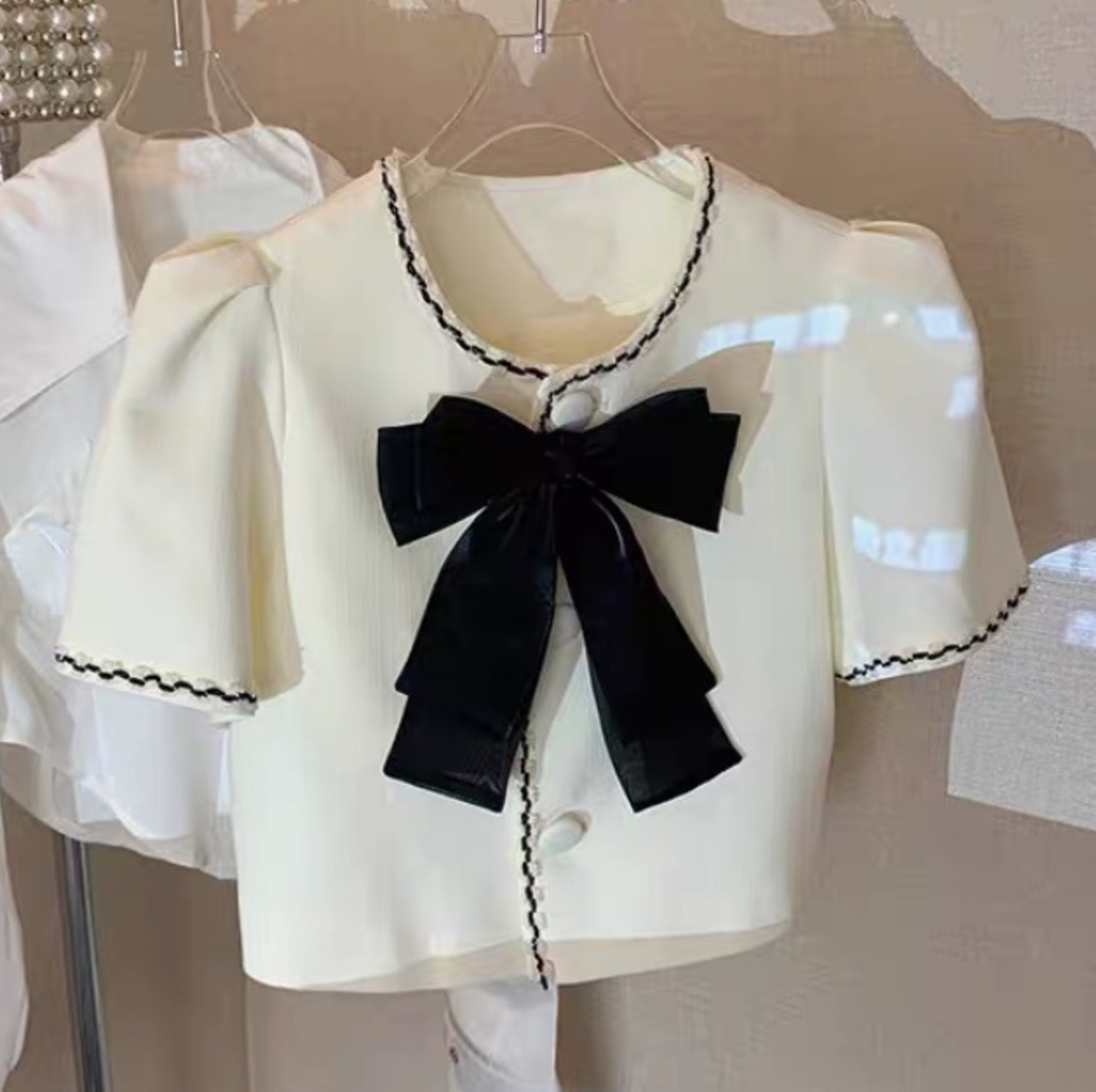 レディース トップス シャツ ブラウス ショート 半袖 パフスリーブ Uネック ラウンドネック りぼんタイ フェミニン パイピング リボン 前開き ボタン かわいい 大人可愛い シンプル 上品 おしゃれ レトロ ガーリー エレガント 存在感 ラブリー キュート プリンセス ラグジュアリー クラシカル カレッジ風 学生風 ベーシック ロマンティック 無地 夏 デート お出かけ パーティー イベント レストラン 休日 ホテル 発表会 着回し モテ 清楚 トレンド 流行 インスタ映え S M L 白 ホワイト