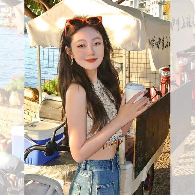 レディース トップス キャミソール ショート 袖なし ホルターネック フェミニン ストリート バックリボン クロシェ 編み込み 編み上げ レースアップ 透け感 シースルー 異国風 ヴィンテージ ドッキング タッセル ビーズ付き かわいい 大人可愛い おしゃれ かっこいい レトロ アジアン エスニック エキゾチック こなれ感 ガーリー ルーズ 抜け感 ラブリー キュート 夏 お出かけ パーティー イベント リゾート 休日 バカンス フェス トレンド 流行 インスタ映え フリーサイズ 白 ホワイト ベージュ