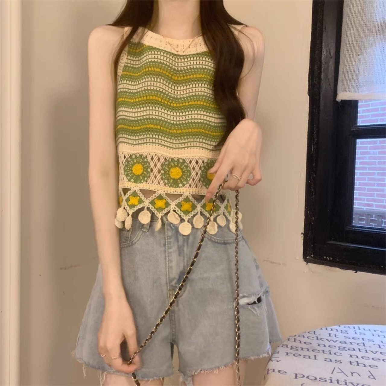 レディース トップス キャミソール ショート 袖なし ノースリーブ Uネック クロシェ 編み込み かわいい 大人可愛い きれいめ おしゃれ レトロ こなれ感 ガーリー 抜け感 ヴィンテージ ラブリー キュート ベーシック プレッピー ロマンティック ナチュラル 夏 デート お出かけ イベント リゾート 旅行 ビーチ 女子会 休日 バカンス ショッピング ライブ フェス 重ね着 楽ちん 普段使い 着回し レイヤード トレンド 流行 インスタ映え S M L 黒 ブラック 水色 ブルー 緑 グリーン
