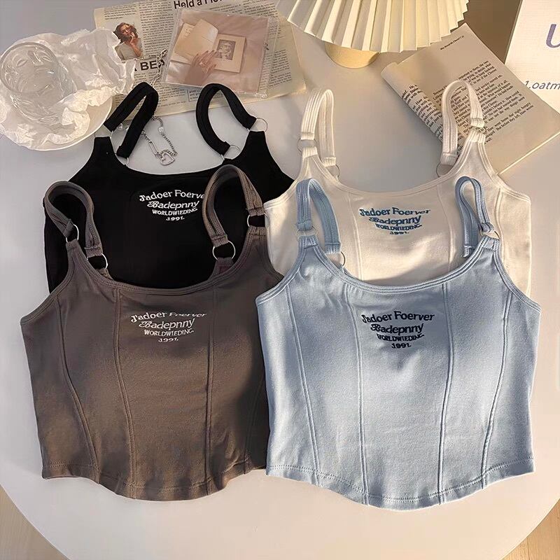 レディース トップス キャミソール ショート 袖なし ノースリーブ Uネック カップ付き かわいい 大人可愛い きれいめ おしゃれ レトロ こなれ感 ラフ ガーリー ルーズ 抜け感 ラブリー キュート ベーシック プレッピー ロマンティック ナチュラル ロゴ 夏 デート お出かけ イベント リゾート 旅行 ビーチ 女子会 休日 バカンス ショッピング ライブ フェス 重ね着 楽ちん 普段使い 着回し レイヤード トレンド 流行 インスタ映え フリーサイズ 白 ホワイト 黒 ブラック グレー 水色 ブルー